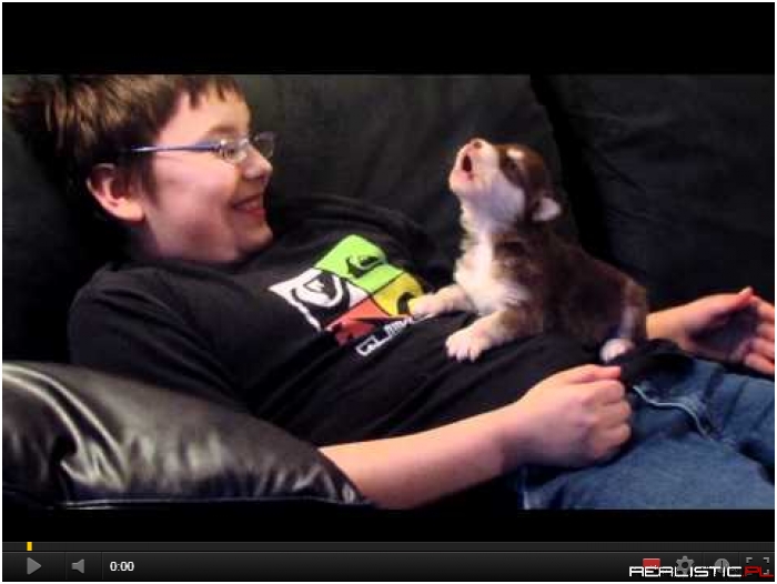 Ten mały Husky uczy się wyć wraz ze