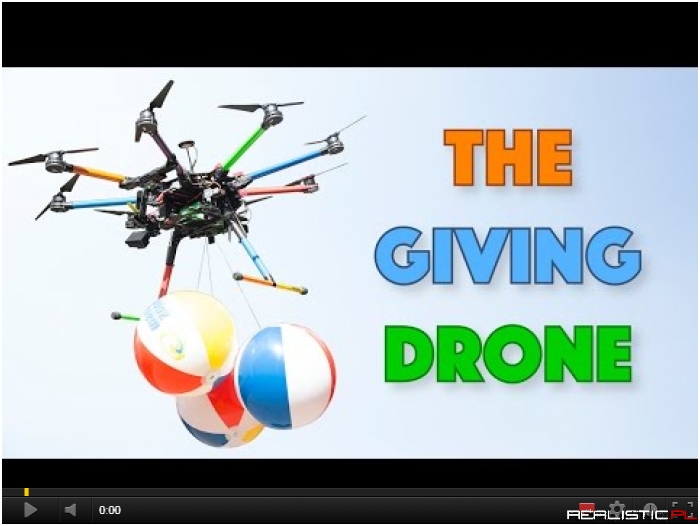 Facet zrzuca prezenty z drona. Gdy