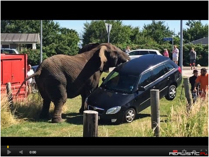 Atak rozwścieczonego słonia na auto i