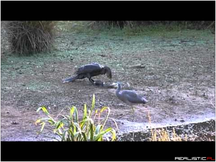 Kormoran pożera wielkiego węgorza...